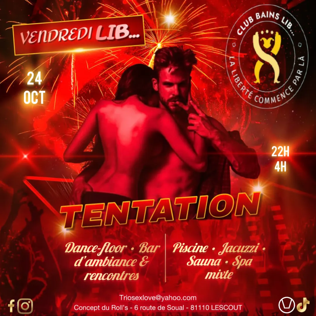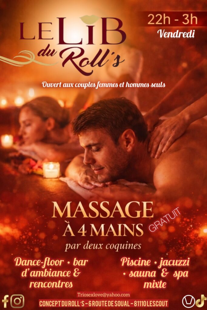 Le Lib du Roll’s, club libertin, vous ouvre les portes d’un lieu élégant, discret et entièrement pensé pour la liberté des sens. À Lescout, ce club libertin nouvelle génération réunit ambiance, confort et raffinement dans un cadre emblématique. Un univers à part, conçu pour les débutants comme pour les initiés, au cœur du Sud du Tarn.