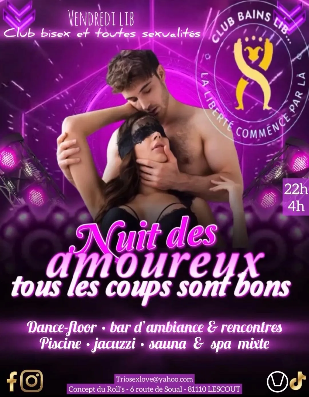 Découvrez les soirées libertines du Lib du Roll’s, un lieu unique dans le sud du Tarn dédié aux adultes en quête d’une expérience différente, élégante et respectueuse. Dans un cadre soigné et sécurisé, Le Lib du Roll’s propose des événements où liberté, discrétion et bienveillance sont au cœur de chaque rencontre. Que vous soyez curieux, initié ou simplement à la recherche d’une ambiance raffinée, nos soirées libertines vous invitent à vivre des moments hors du temps, dans un environnement maîtrisé et de qualité.